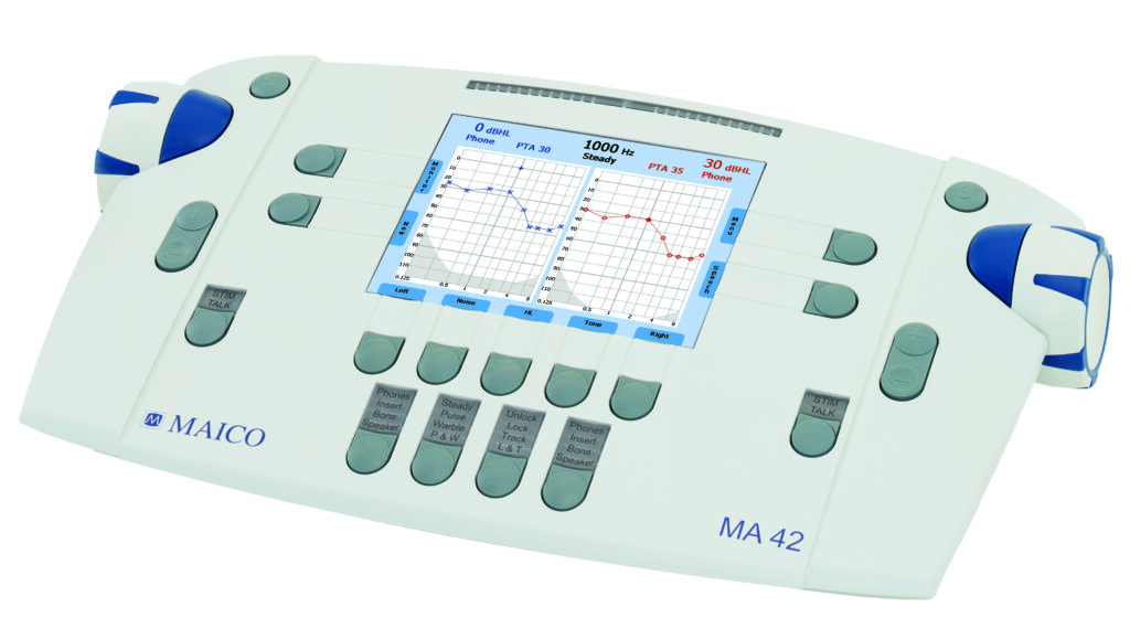 El MA 42 es un audiómetro diagnóstico de alta precisión que permite mezclar señales y canales de manera independiente. Sus pantallas dedicadas para pruebas especiales ofrecen un uso rápido y sencillo.