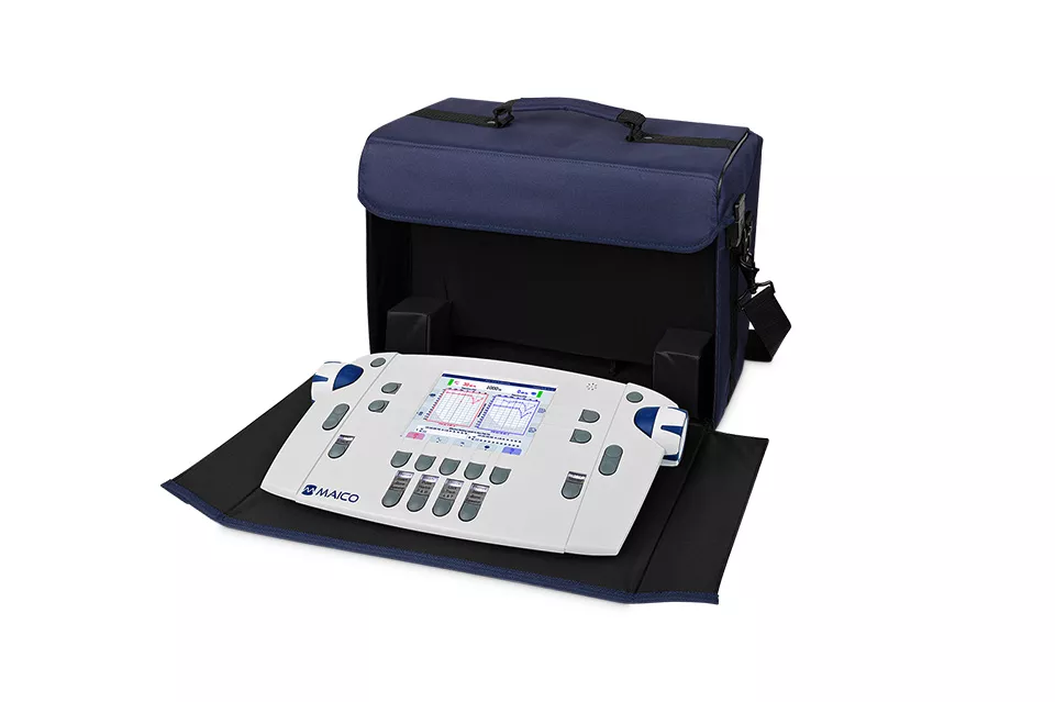 El audiómetro diagnóstico MA 42 es ideal para la audiometría móvil. Su tamaño reducido y peso mínimo (1,5 kg) permiten realizar pruebas con total comodidad en cualquier lugar. Utiliza el maletín de transporte opcional como tu oficina móvil y lleva el MA 42 a donde lo necesites.